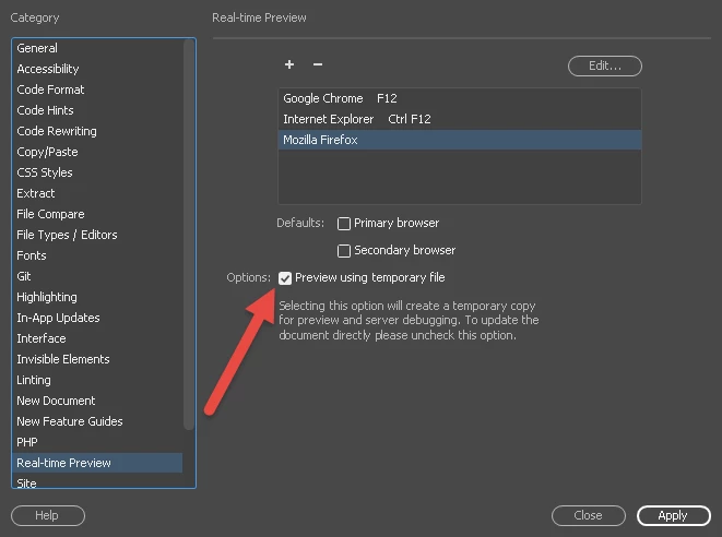 I went to Preferences, clicked on Real-time Preview and selected the check mark for Preview using temporary file.