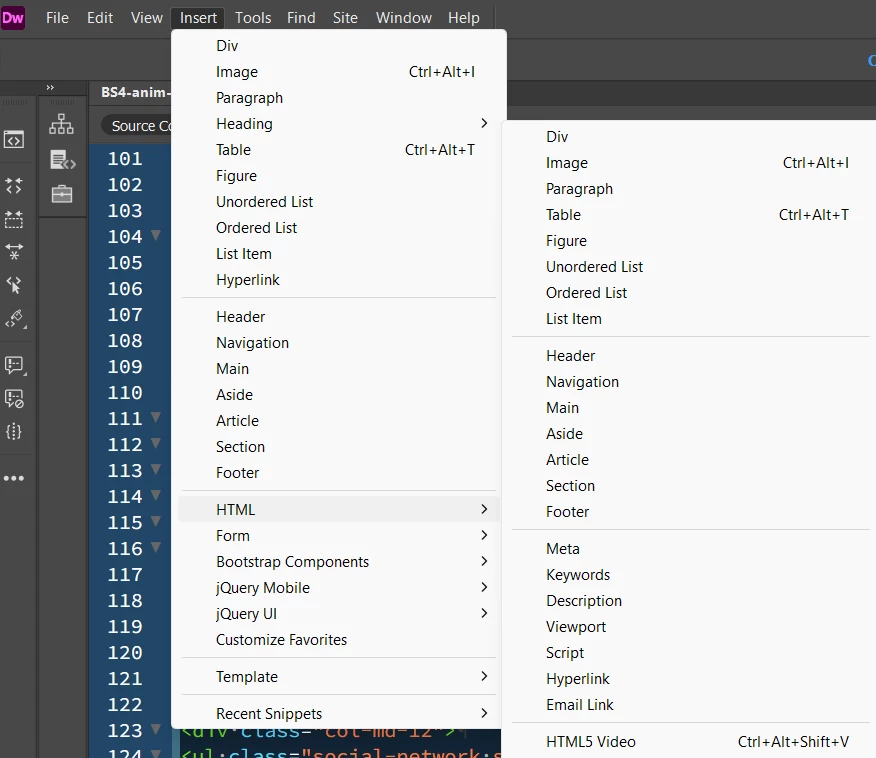 Don't mind the code it's the insert panel that isn't behaving. This is extremely frustrating as I am a beginner and would like to USE THE INSERT PANEL TO HELP ME.