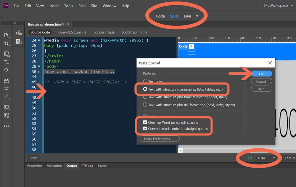 Suddenly, I am no longer to copy and paste formatted Microsoft Word files (current version) into the current version Dreamweaver. I checked Dreamweaver's preference for pasting and the only one that kind of worked was Text Only, and it imported the enrire file as one long sentence with no formating. When I tried the other formatting options, nothing happened, but I did get the following error message, which I di dnot understand. "The clipbord doesn't contain table cells."