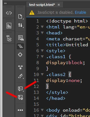 1. Select the <script> your script here </script> block in your HTML