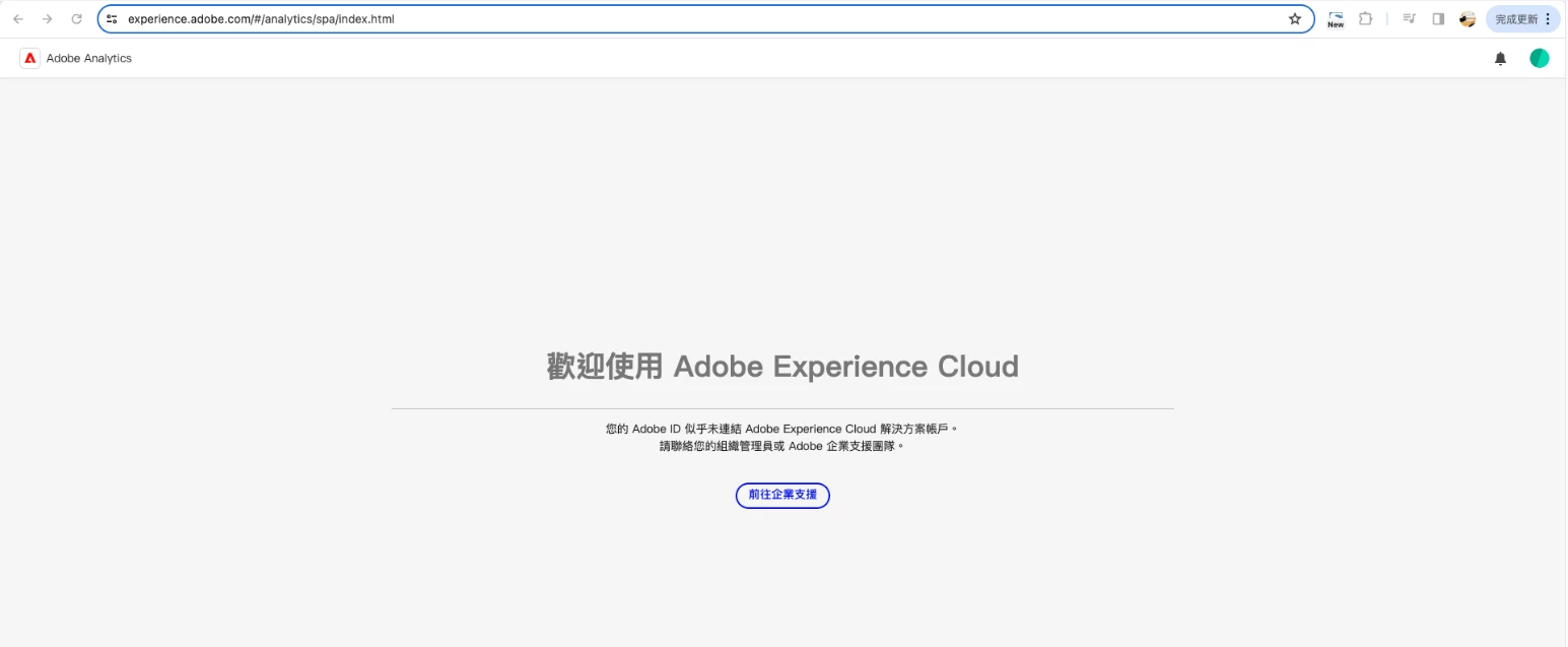 請問我們公司希望能使用 Analysis Workspace 的功能;在登入 Admin Console 時也遇到相同的登入問題