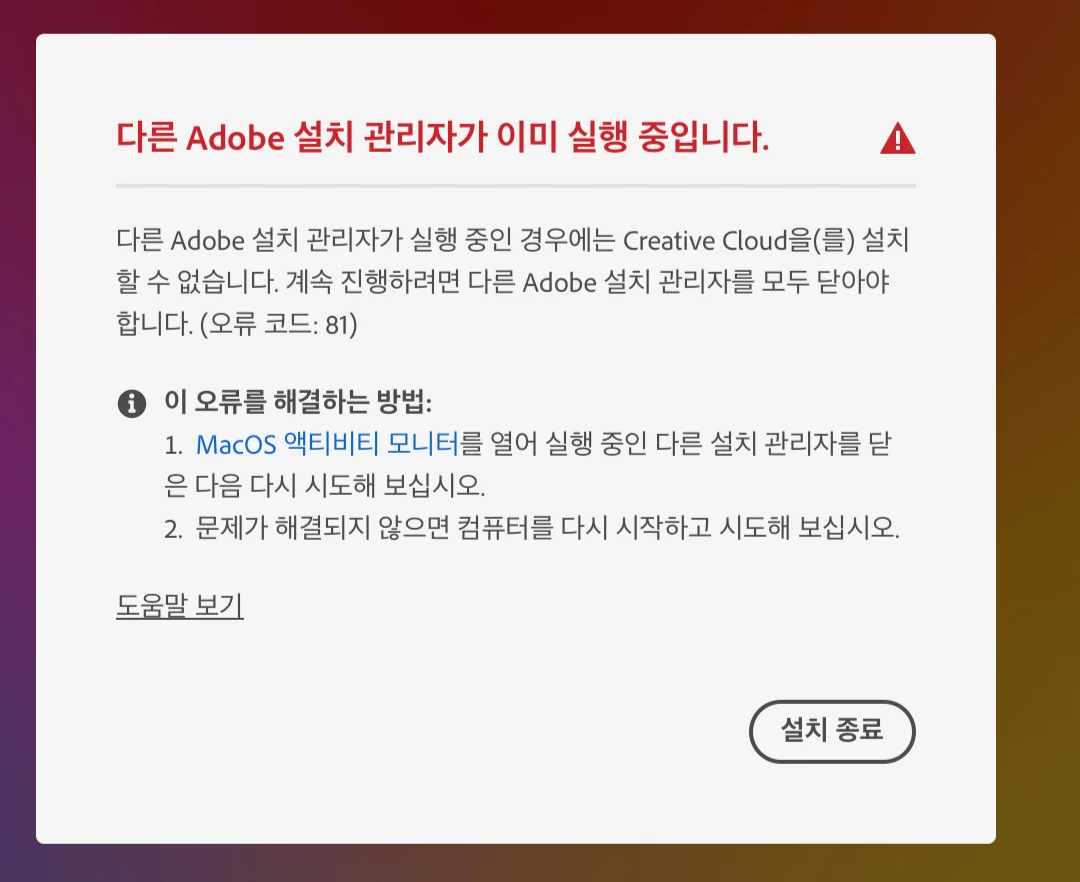 어도비 설치 오류
