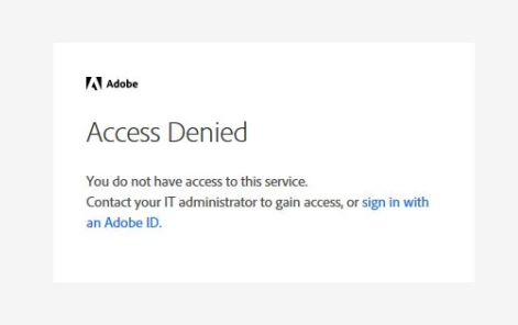 Signing into our Adobe enterprise with our adobe admin account, constantly gives error of Access Denied. You do not have access to this service. Contact your IT administrator to gain access, or sign in with an Adobe ID.