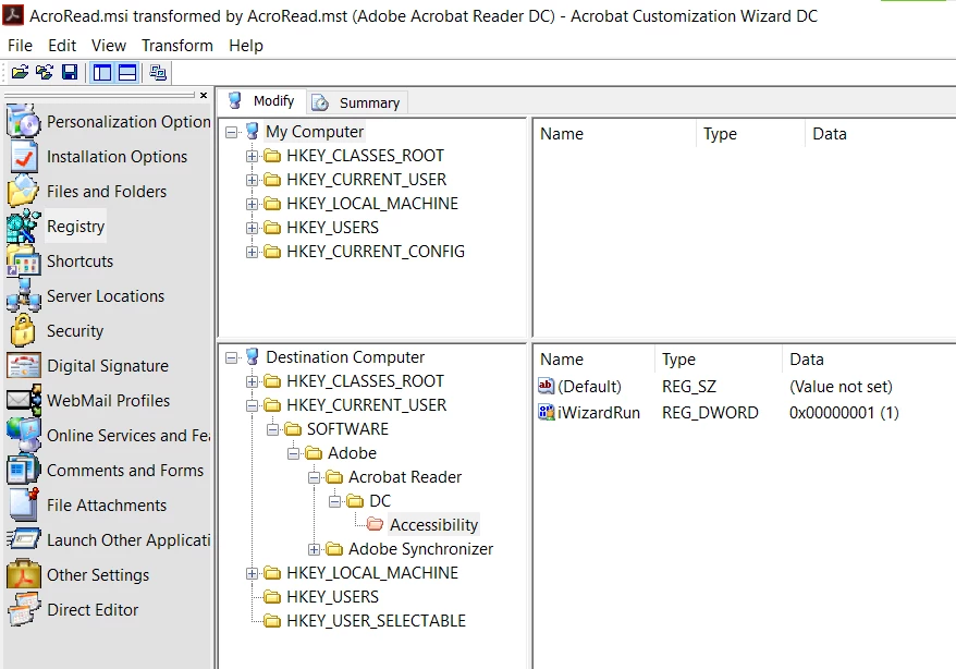How to disable the Accessibility Setup Assistant on first run for Acrobat DC Pro. Our Windows 10 systems all have speech to text enabled, which the adobe installer assumes all the users are disabled and it runs the ASA. This is NOT the case and causes much confusion for our end users. We basically have to walk them through opening Adobe the first time on a person by person basis.