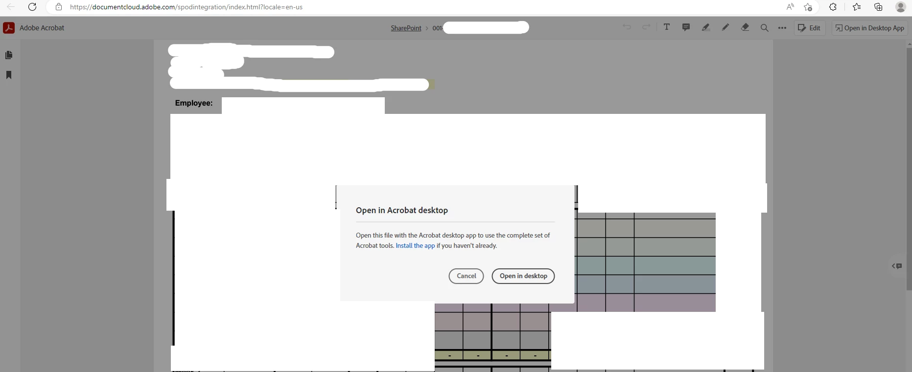 We have recently migrated one of our file servers to Sharepoint, and implemented the Adobe Document Cloud app so that users can access their PDF files using their desktop applications. Unfortunately we are running into an issue with some users who are using Adobe Acrobat Pro 2020. It seems when Acrobat Pro 2020 is set as the default app in Windows, the "Open in Desktop App" button does not work. From my troubleshooting I was only able to get the button to work when Adobe Acrobat Reader DC was set as the default app. This is unfortunately not a good workaround as users cannot then edit the files in question. I am wondering if there are particular settings needed in order to fix this, or is this an intentional issue since Acrobat Pro 2020 is not a cloud based product? I have attached a screenshot of the button in question. Any assistance in this would be greatly appreciated.