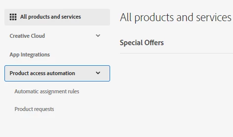 We are a k12 school and hold "CCE All Apps for k12" named user licenses. Our users all have Federated accounts created via Active Directory/SSO. I would like to be able to set up access requests for my users and/or to be able to create a product access link so folks can effectively self-license. I do not, however see any of these options on the Packages page of our Admin Console...
