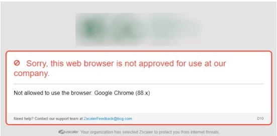 "Sorry this web browser is not approved for use at our company."