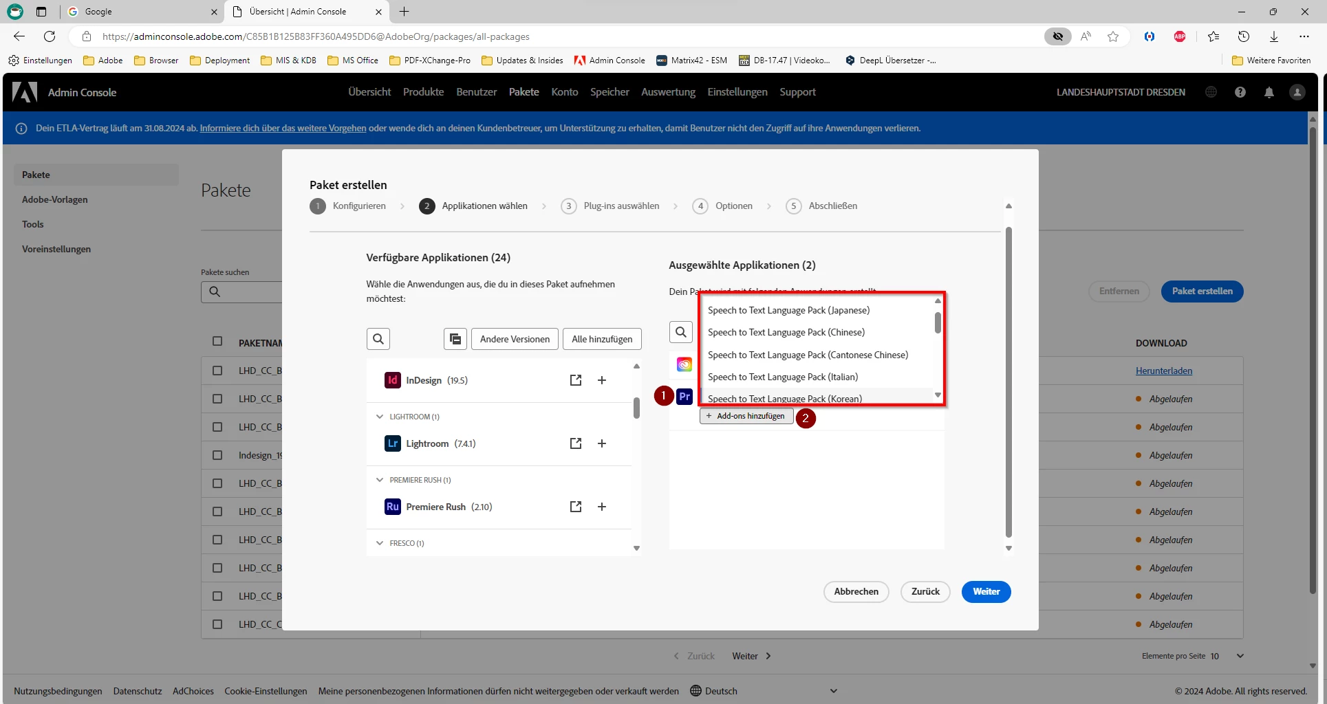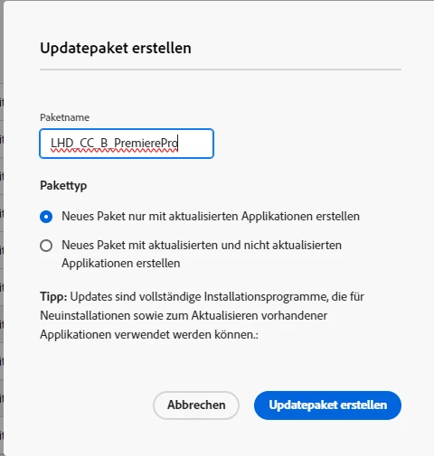 Bei der Bereitstellung - z. B. Adobe Premiere Pro - werden Addons zur Auswahl angeboten, die dann mit dem Paket bereitgestellt und verteilt werden.