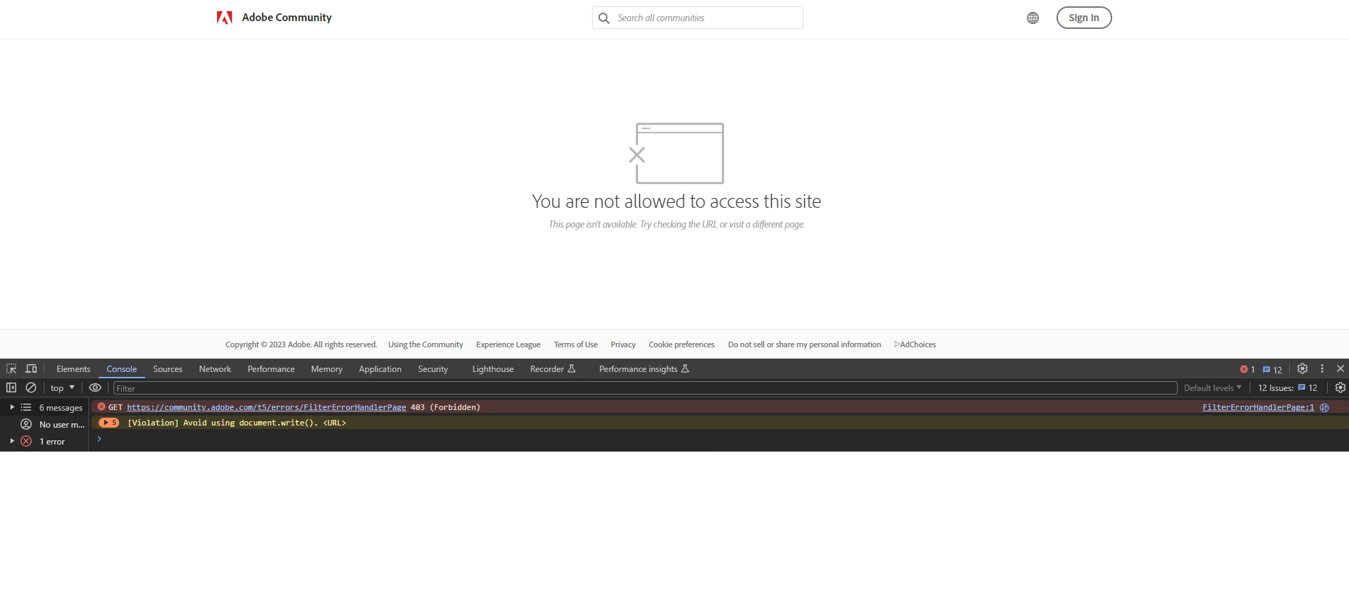 Adobe Community Forums blocked by Adobe for user - 403 error received from Adobe Server