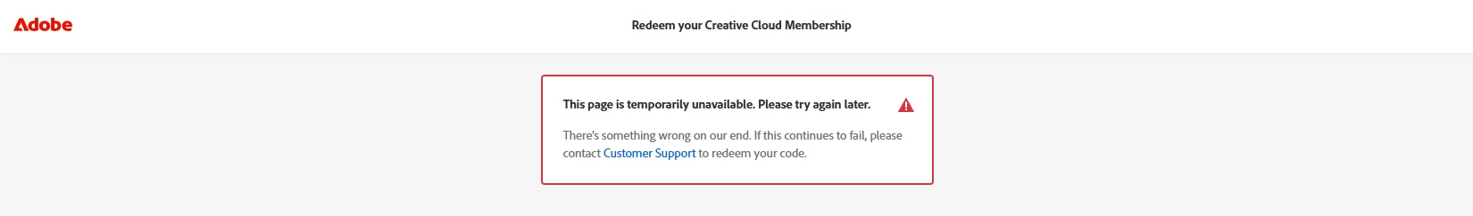 I got a reward from nvidia of Adobe creative cloud 1 month reward. when i am trying to redeem it i am getting this error.
