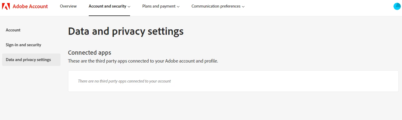 Adobe "Data and privacy settings" are not available