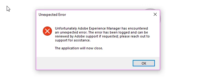 I am not able to get the login screen for the AEM desktop app. Can you please let me know why i am getting the error below.