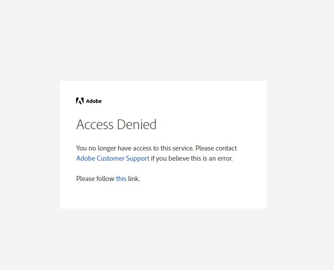 - Some services like Adobe Fonts : when I try to open the website and login, I get ( sometimes ) an Access Denied error.. seems like I can't use the service via my subscription, and had the same error when I tried to login to behance too ( Meaning I can't login to neither the old profile, nor the new fresh one).