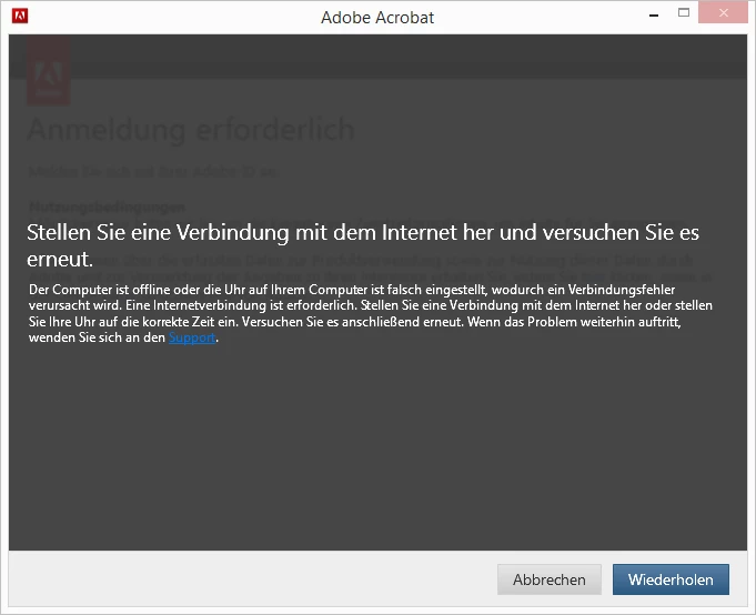 Adobe Acrobat kann keine Verbindung zum Internet aufbauen, obwohl Internet ok ist.