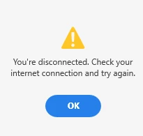 - When connected to the company network, the application shows a message indicating that I am offline.