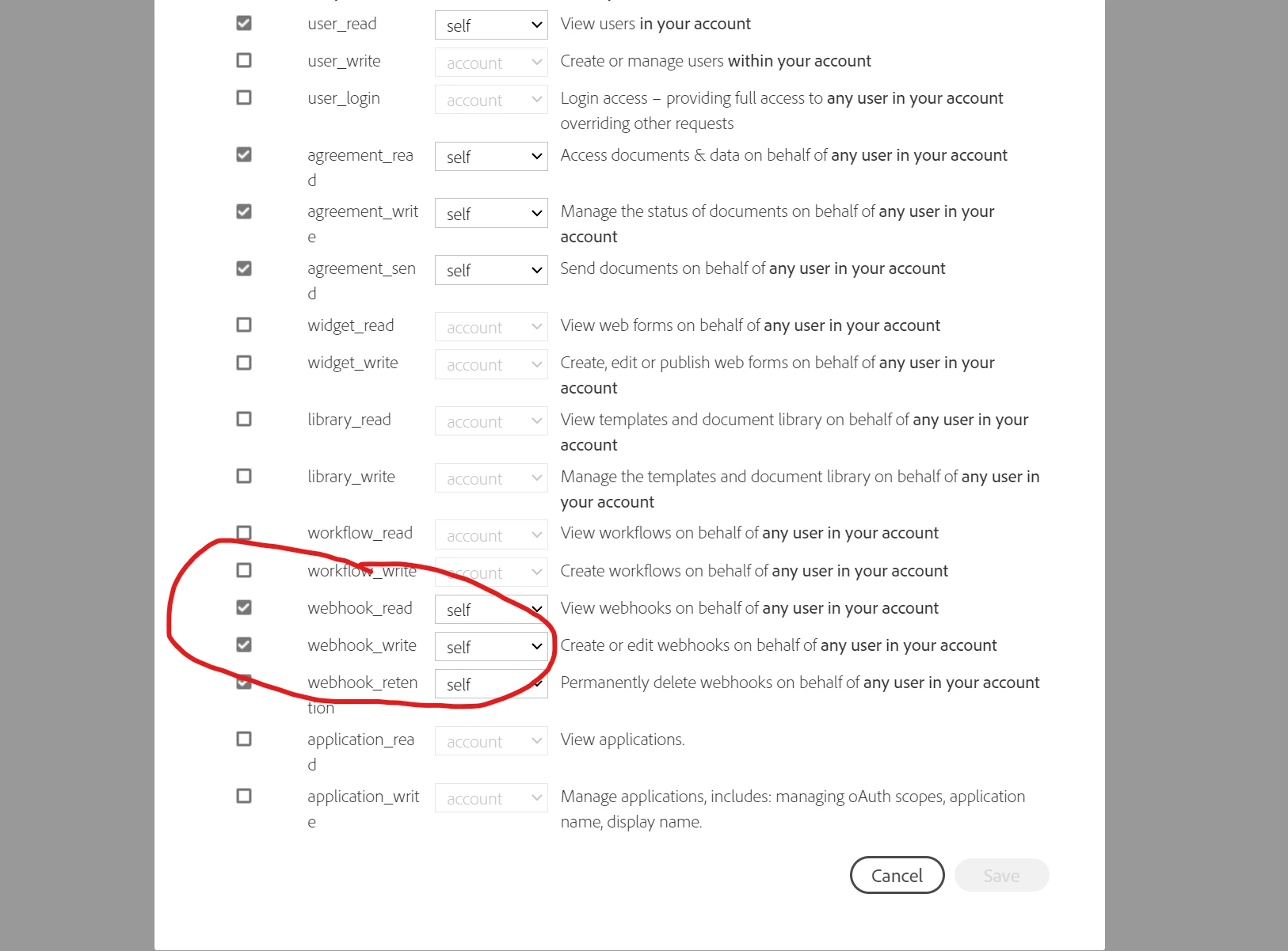 AdobeSign API: Cannot create webhook (PERMISSION DENIED)
