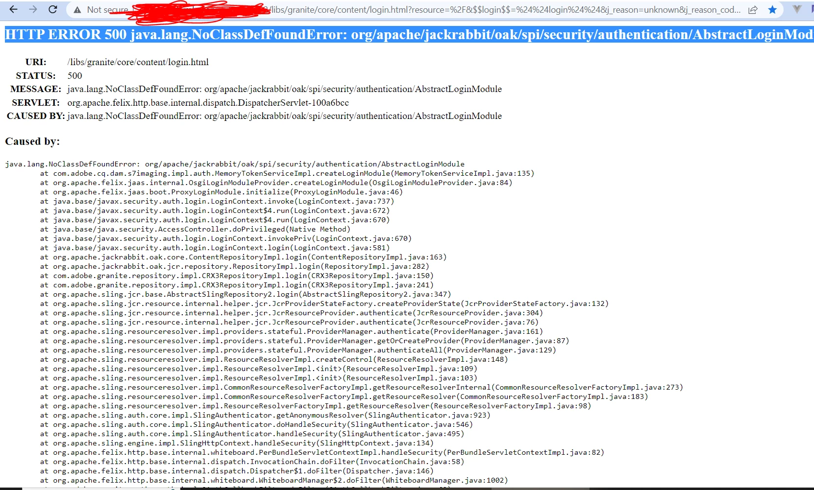 AEM SP 6.5.12 HTTP ERROR 500 java.lang.NoClassDefFoundError: org/apache/jackrabbit/oak/spi/security