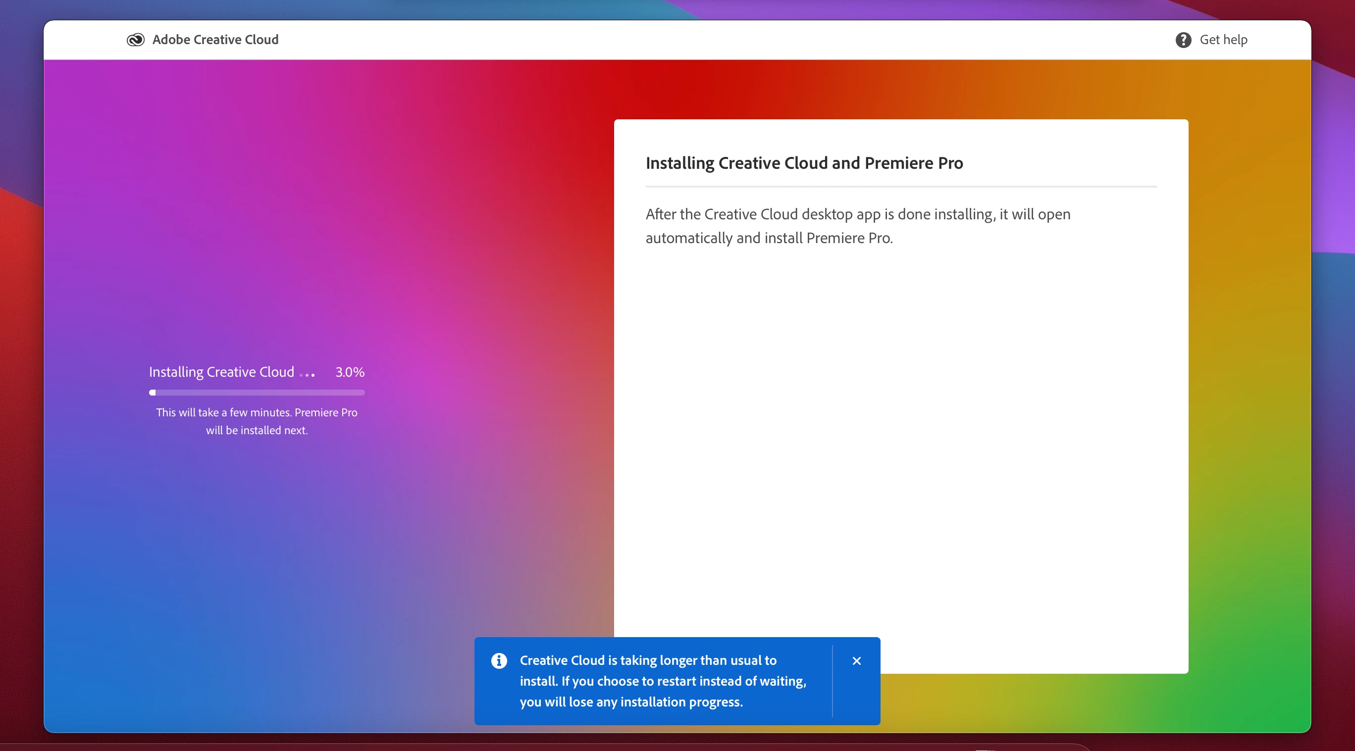 I'm having a difficult time installing apps onto my comuter. Example: Premire Pro instalation installs up to 20% and then fails to install the rest.
