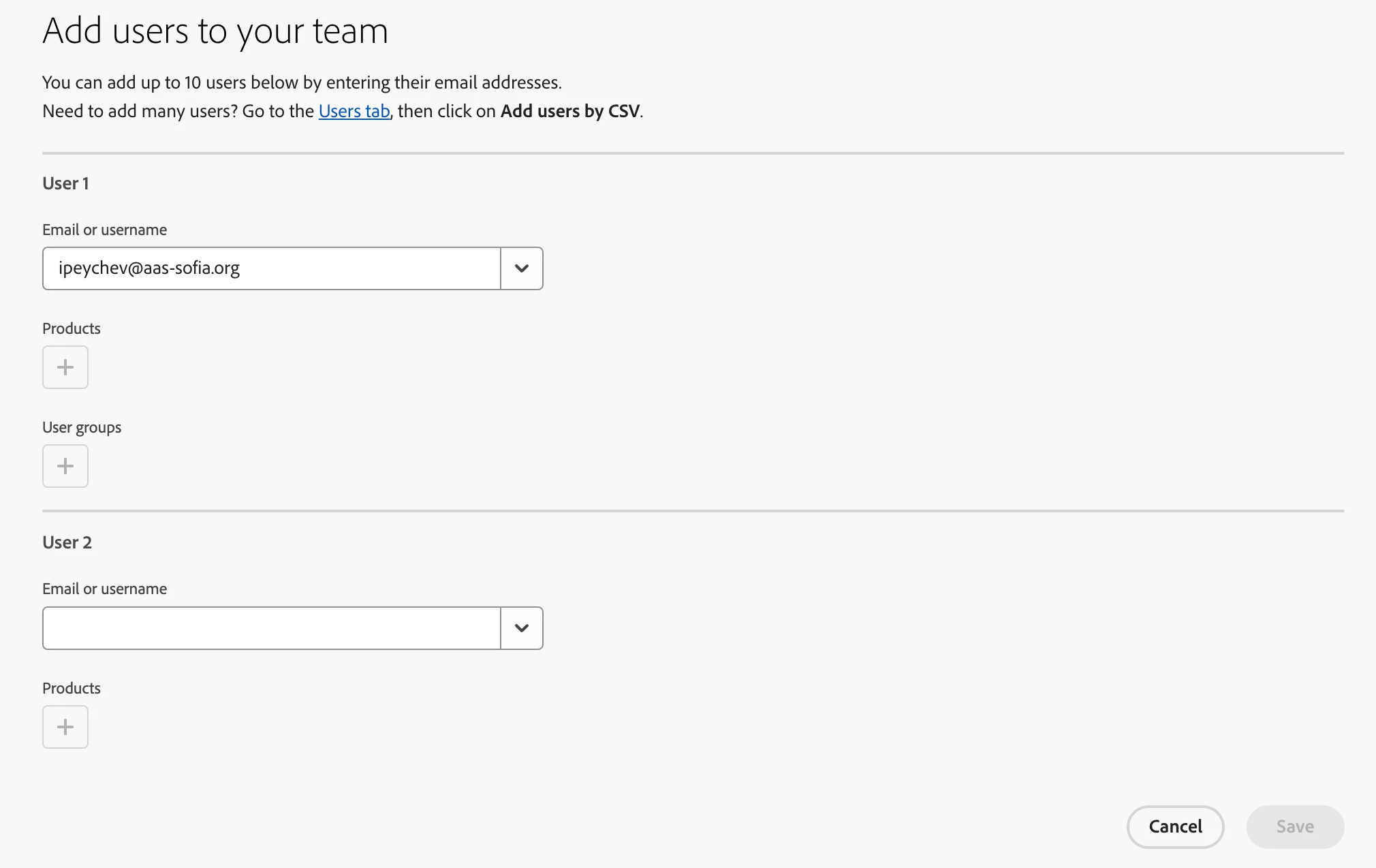 If you have a Google console, you can easily add users via Sync - https://helpx.adobe.com/in/enterprise/using/add-google-sync.html