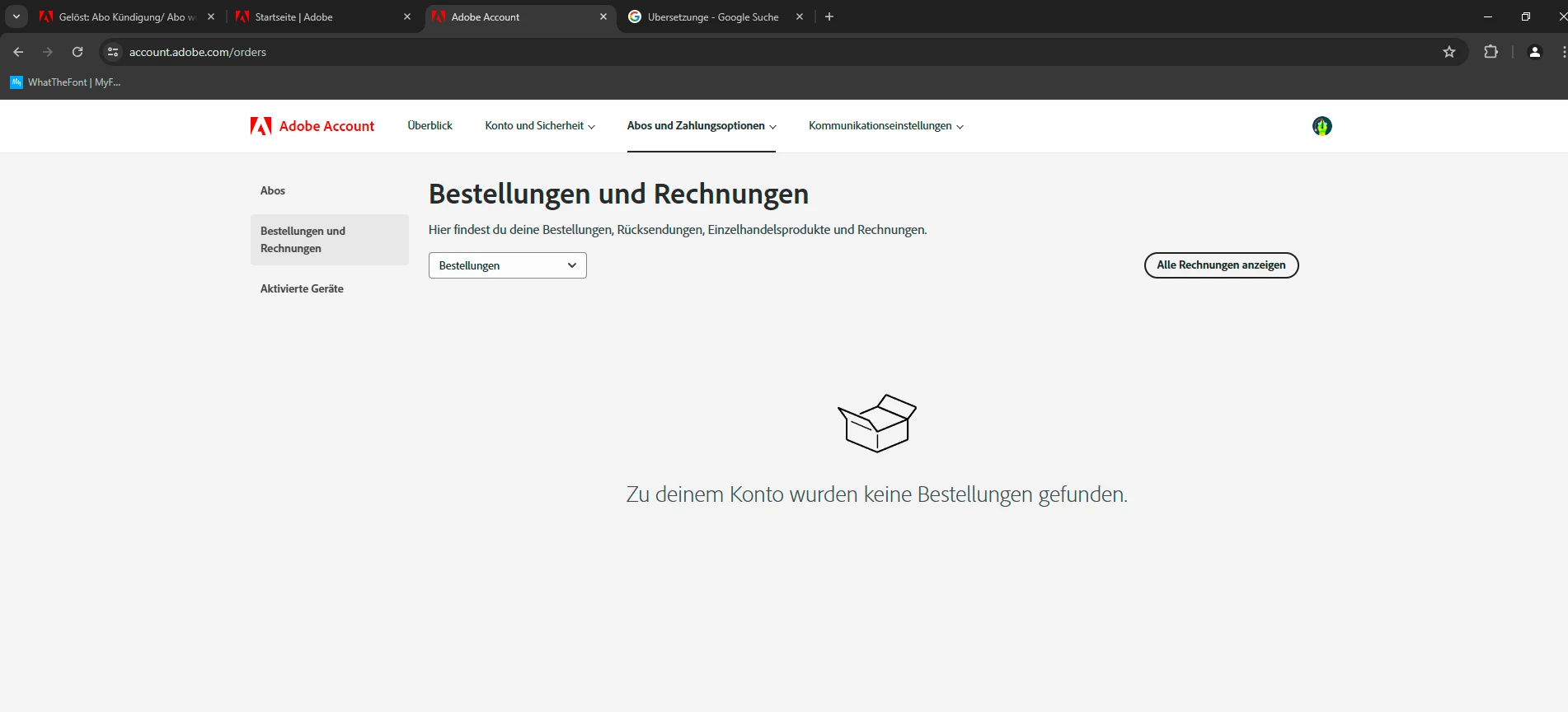 Betreff: Abo Kündigung/ Abo wird im Account nicht angezeigt