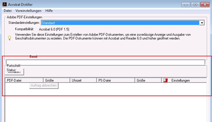 Deployments are working fine, but when I start the Acrobat Distiller from the German installation it looks like this:
