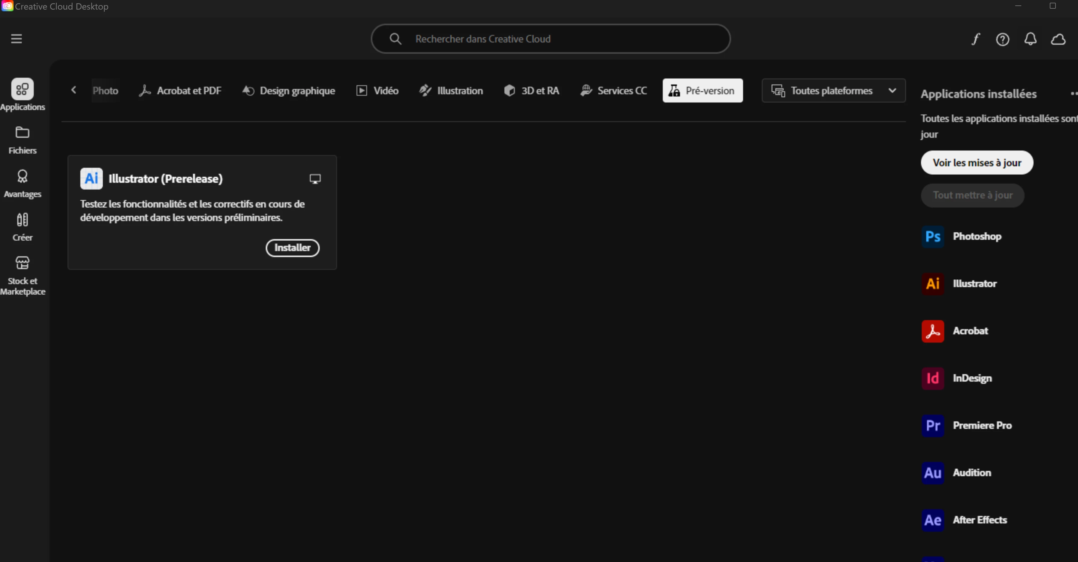 The only beta version available is Illustrator.