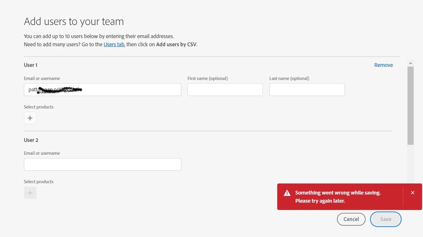 BBG - Sasima157FParticipantForum|Forum|4 years agoSeptember 17, 2021QuestionCan't add userForum|Forum|4 years agoSeptember 17, 20211 reply2234 viewsCan't add user it error "Something went wrong while saving. Please try again later." Please see attach picture.Users and groups