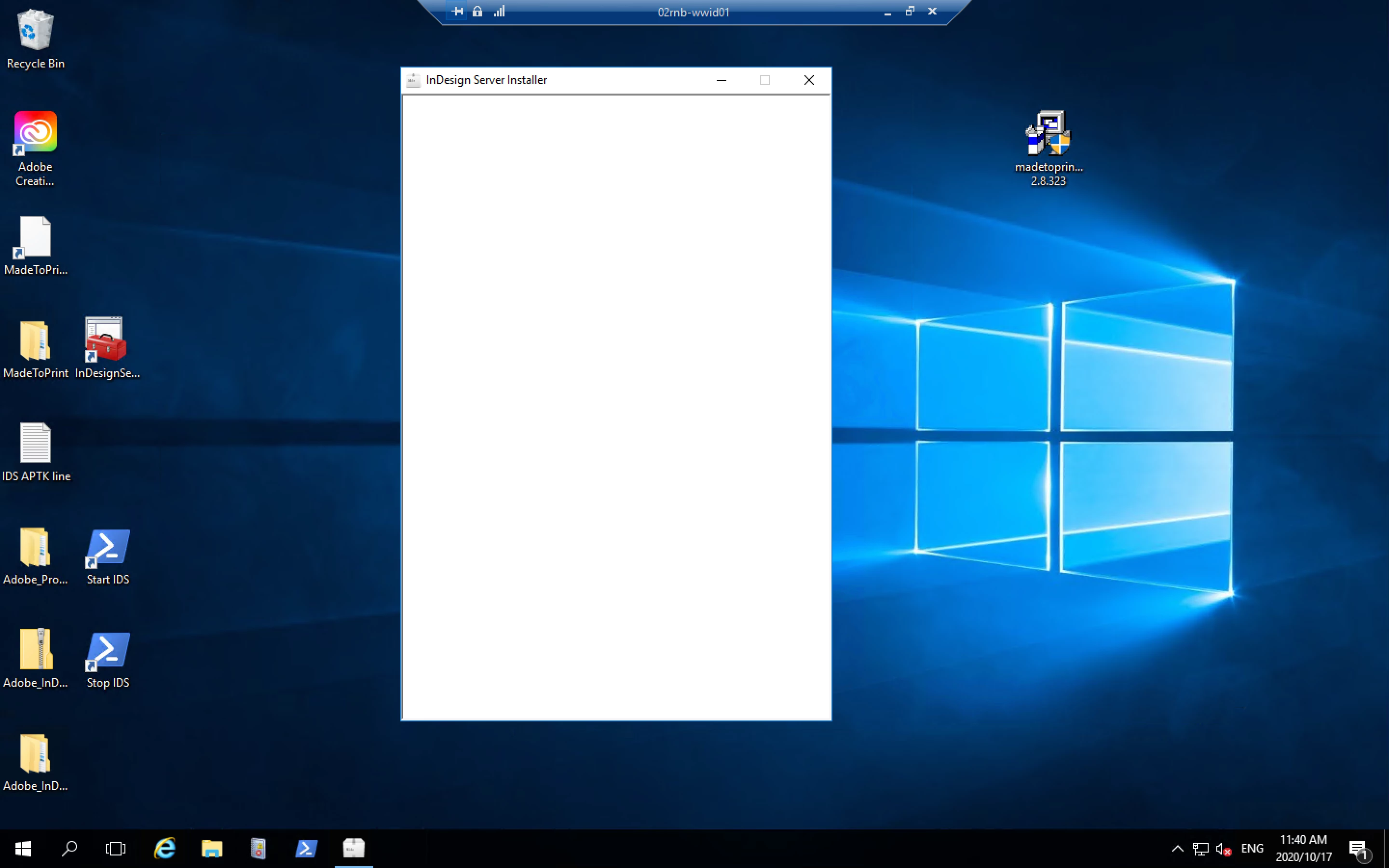 When I try install indesign server CC 2019, I get a blank screen.