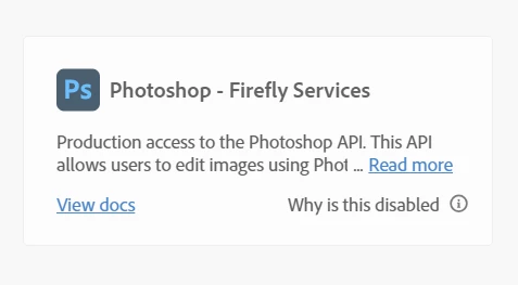 Please note that in order to access the Photoshop API, you must purchase Firefly Services under an Enterprise Term License Agreement (ETLA). This is the umbrella offering that provides access to APIs such as Photoshop API, Firefly API, InDesign API, and others.