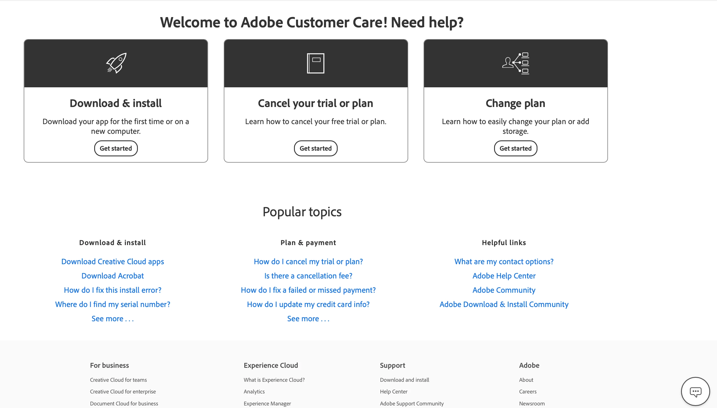 there are 3 ways to contact adobe; chat, phone and twitter: