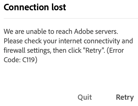 Creative Cloud for Team Installation Stalls at 58% (Error Code 119)