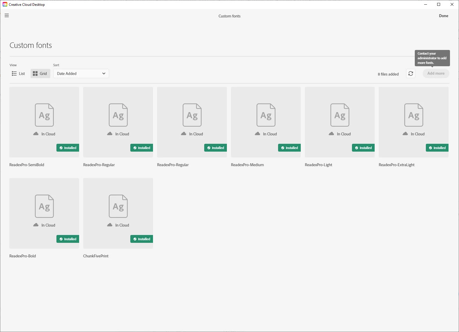 Our creative team has CC licences within an enterprise structure. We recently moved to Adobe Fonts as our font manager which has worked well, except for being able to add fonts we have purchased that are not available on Adobe Fonts. With Extensis, end-user designers were able to add fonts indepent from IT but with Adobe Fonts we have to submit a request to IT to add custom fonts for us, which can sometimes take several days.