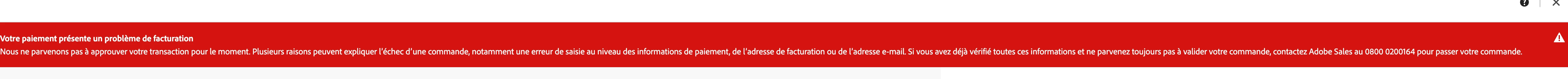 I cannot buy adobe express. I cannot change my credit card. I recieve that ( in tehe picture)