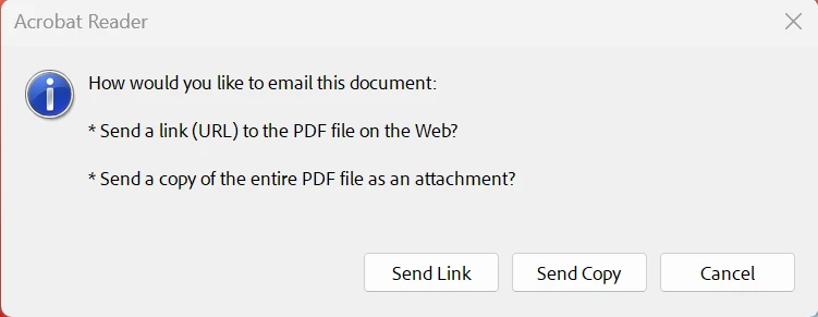 Regarding your other question, when a user sends a document link, the file is stored securely in Adobe’s cloud. It also appears in the sender’s Acrobat on the web under Documents > Your documents, where it can be managed or removed. You can find more details here: