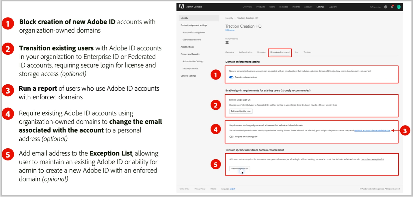 - Block creation of new Adobe ID accounts with an organization-owned domain