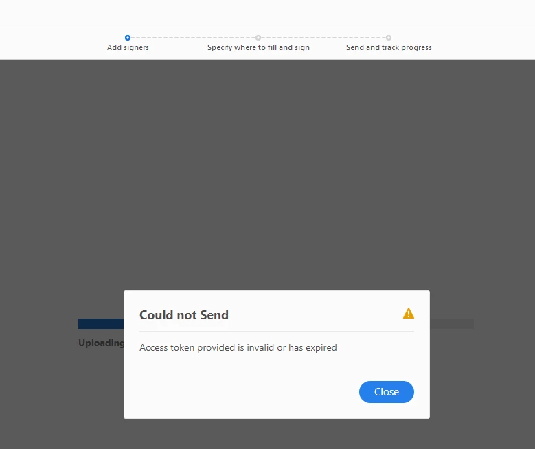 Error "access token provided is invalid or has expired" while requesting e-signatures in Acrobat