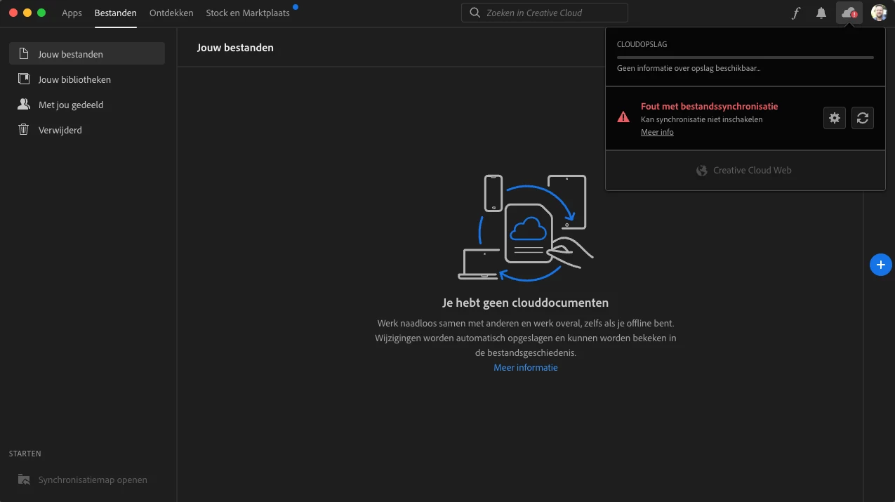 I just installed Creative Cloud on my new Mac (MacOS Ventura), but for some reason the file synchronization fails. I can't even find the 'Creative Could Files' folder (it doesn't exist).