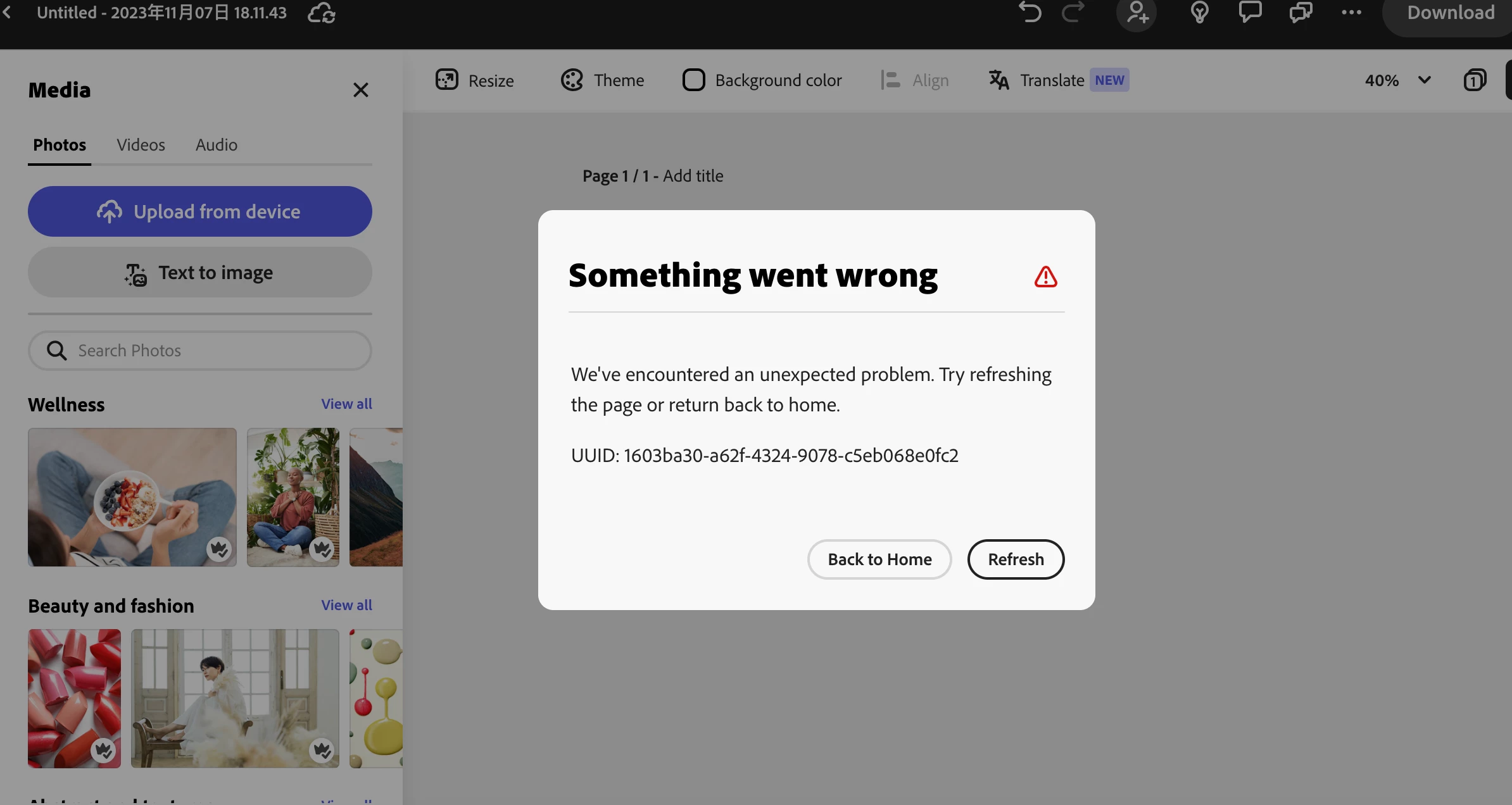 Something went wrong error message occuring on every single step of adobe creative cloud.