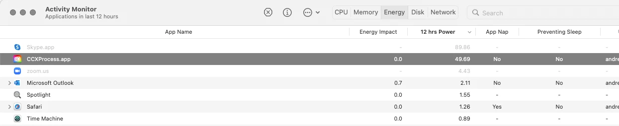 excessive battery drain from CCXprocess.app on os12.1 with M1 chip