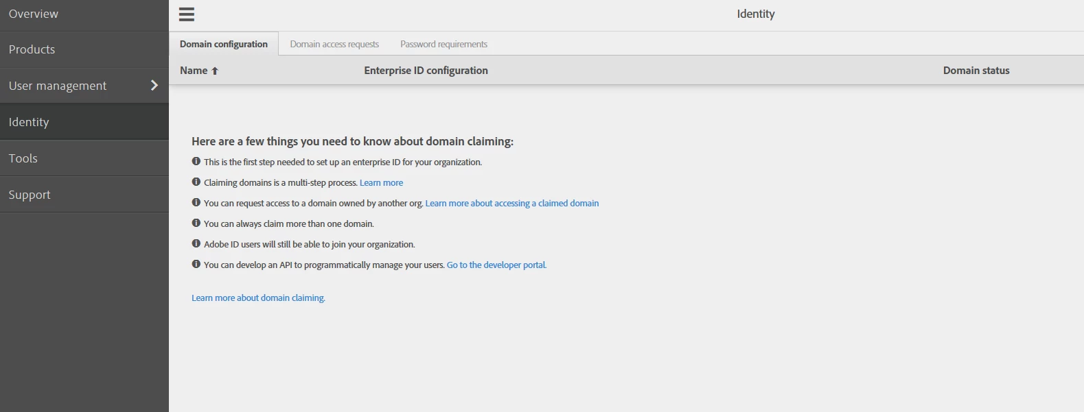 I would like to set up Federated ID's to be used with the Creative Cloud Suite but when I go to the Adobe Admin Console and click on ID there is no button option to "claim domain". I am logged in as a System Administrator. Is there a difference license or permission level needed to setup Federated ID's?
