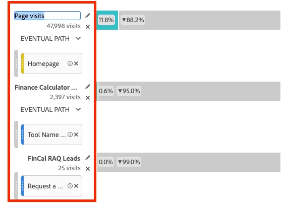 - Fallout: It's obvious that 25 Leads were generated, which I think these are the ones who haved visited the Homepage, visited the tool and then converted to lead.