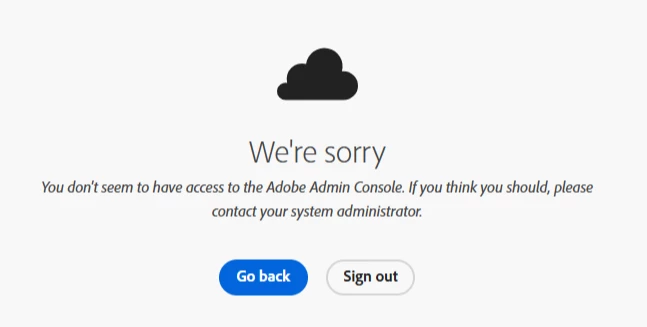 I keep receiving this error message when I attempt to log in to the Adobe Admin Console.