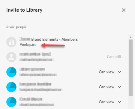 How do I remove "Workspace" access a shared Adobe Library?