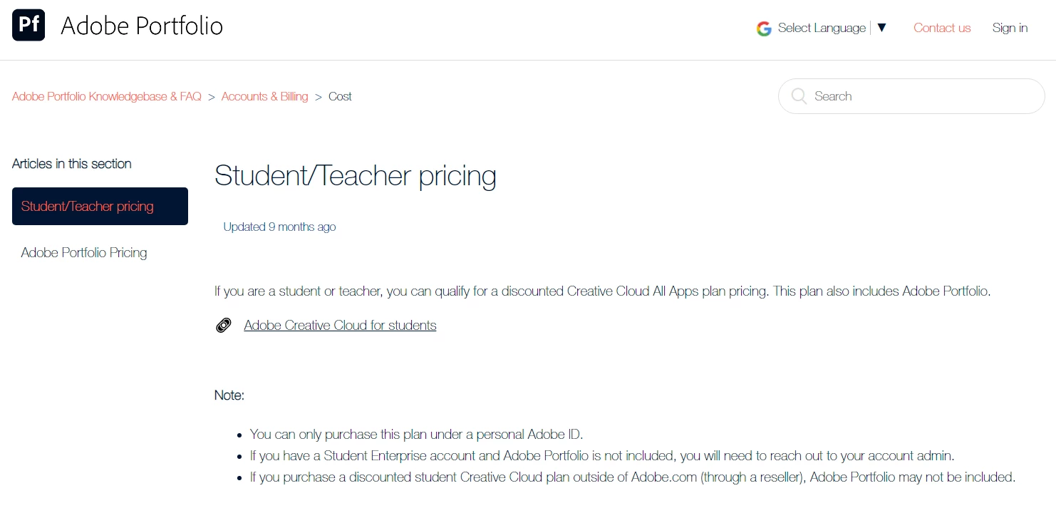 I am a student and i am already payed the adobe package so i wonder if the adobe profolio is included in this packages or do i need to pay extra? I hearded that u pay one time per year, not per month, is that correct?