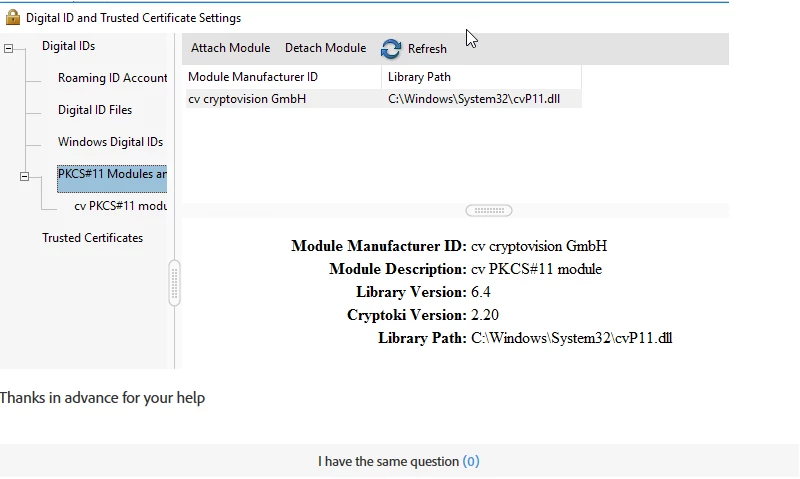 We have a lot of adobe Acrobat Reader and DC Professional on our environment. Now I need to add the PKCS#11 Module.