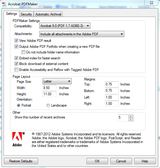 Is there a way to have the setting "output adobe pdf portfolio when creating a new pdf file" in outlook under Acrobat Tab, unchecked, when I install Acrobat XI Pro. To see this setting need to open Outlook, go to Adobe PDF tab on top, click on change conversion settings and you will see the screen below. I would like to have this setting unchecked for everyone instead of doing it manually on everyone's machine.