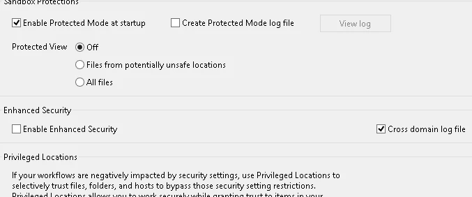 I am turned off protected view in enhanced security but is there any way to turn off protected mode at startup off?