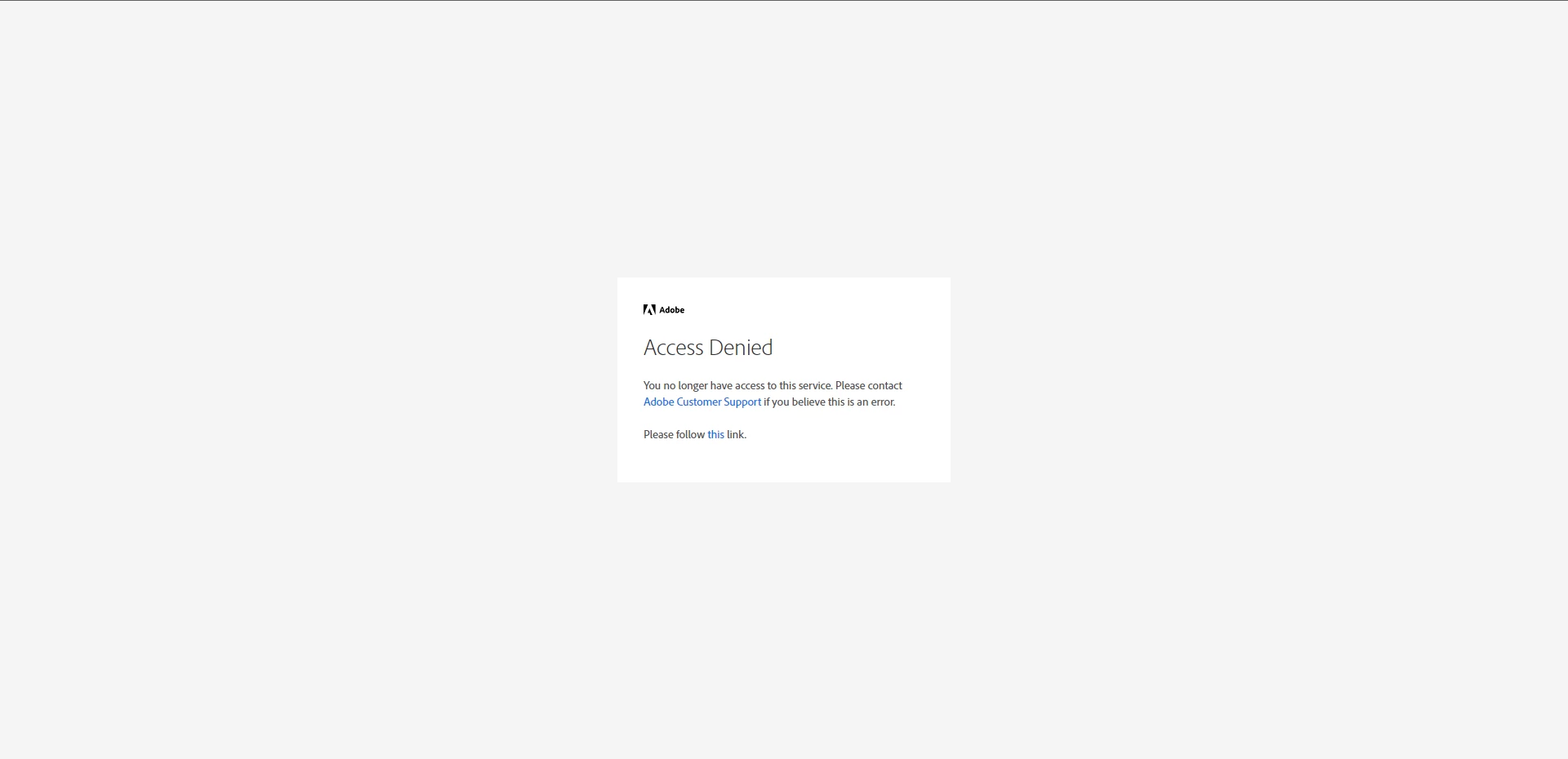 You no longer have access to this service. Please contact Adobe Customer Support if you believe this is an error.
