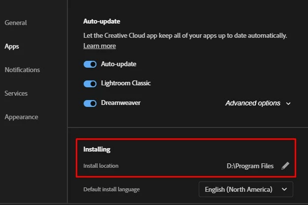 Installing Adobe programs on D drive with a Creative Cloud for Enterprise subscription