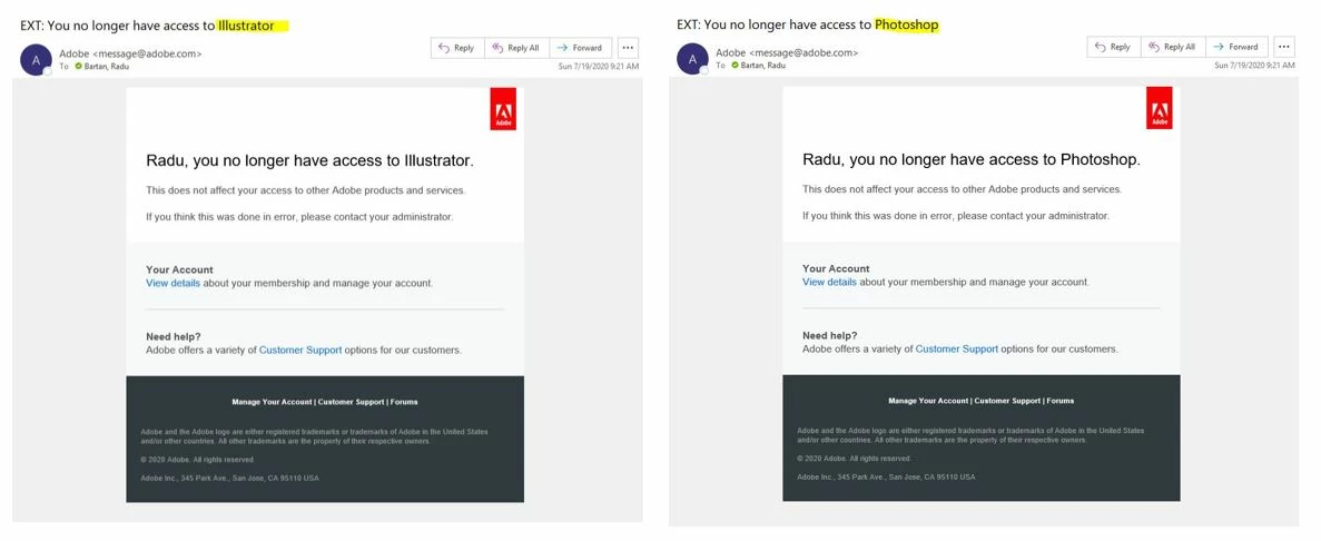 Just got locked out of my enterprise licenses for using Photoshop and Illustrator